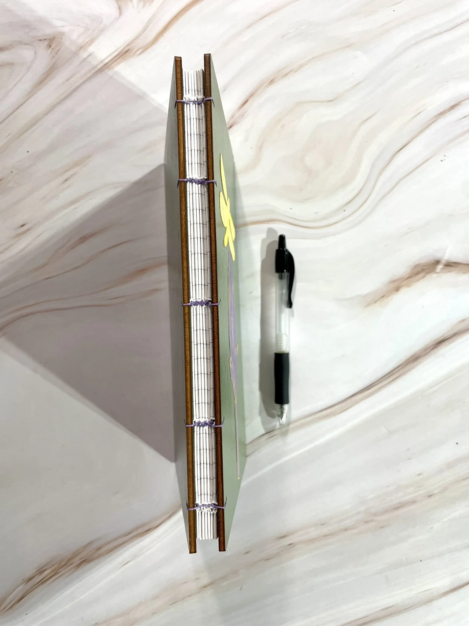 Coptic Stitch Binding: The traditional coptic stitch binding features an open spine, showcasing the stitching holding the book together. It also allows the journal to lay flat, making it easy to write or sketch during campaigns.